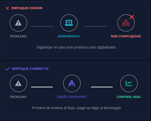 Ante estos problemas, muchas organizaciones incorporan herramientas sin revisar primero cómo está diseñada la operación real.